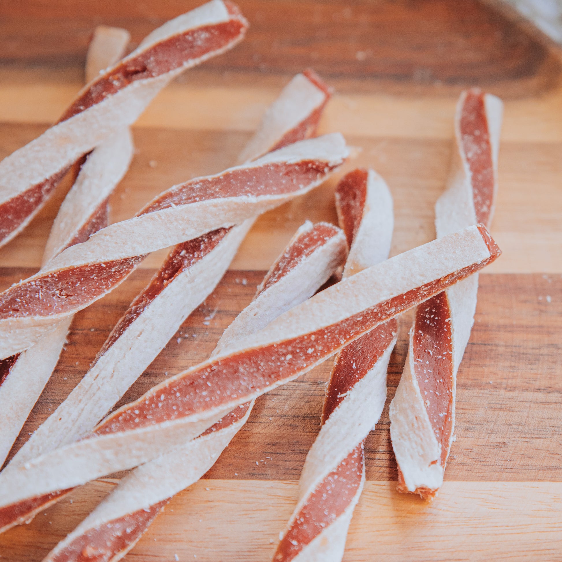 These Lamb & Cod Twists combine two wholesome protein sources; tender lamb and delicate cod into a delicious, gently twisted treat. The soft texture and high meat content make them ideal for dogs with sensitive digestion, as well as puppies and seniors who benefit from a gentler, easy-to-chew snack.